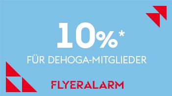 Gutscheincode gültig bis 31.03.2024. Kein Mindestbestellwert. Nicht mit anderen Aktionen oder Monatsangeboten kombinierbar. Keine Barauszahlung möglich. Rabatt nur einlösbar unter www.flyeralarm.com/de und wird im Onlineshop erst nach Eingabe des Codes angezeigt. Der Gutscheincode gilt ausschließlich für Mitglieder des DEHOGA Bayern und nur auf ausgewählte Produkte innerhalb der Kampagne.