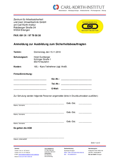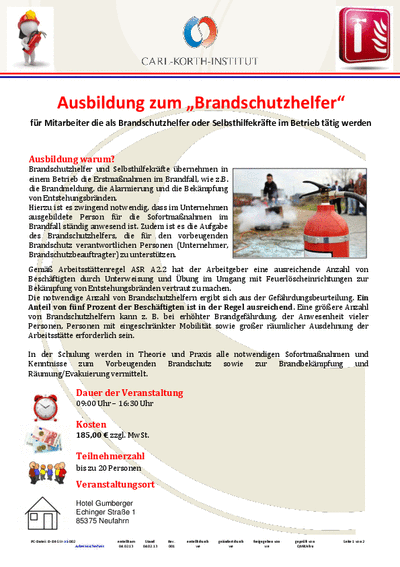 Diese Ausbildung ist daher sehr praxisnah an die Bedürfnisse des Arbeitsschutzes in Ihren