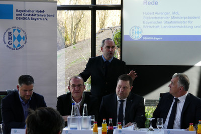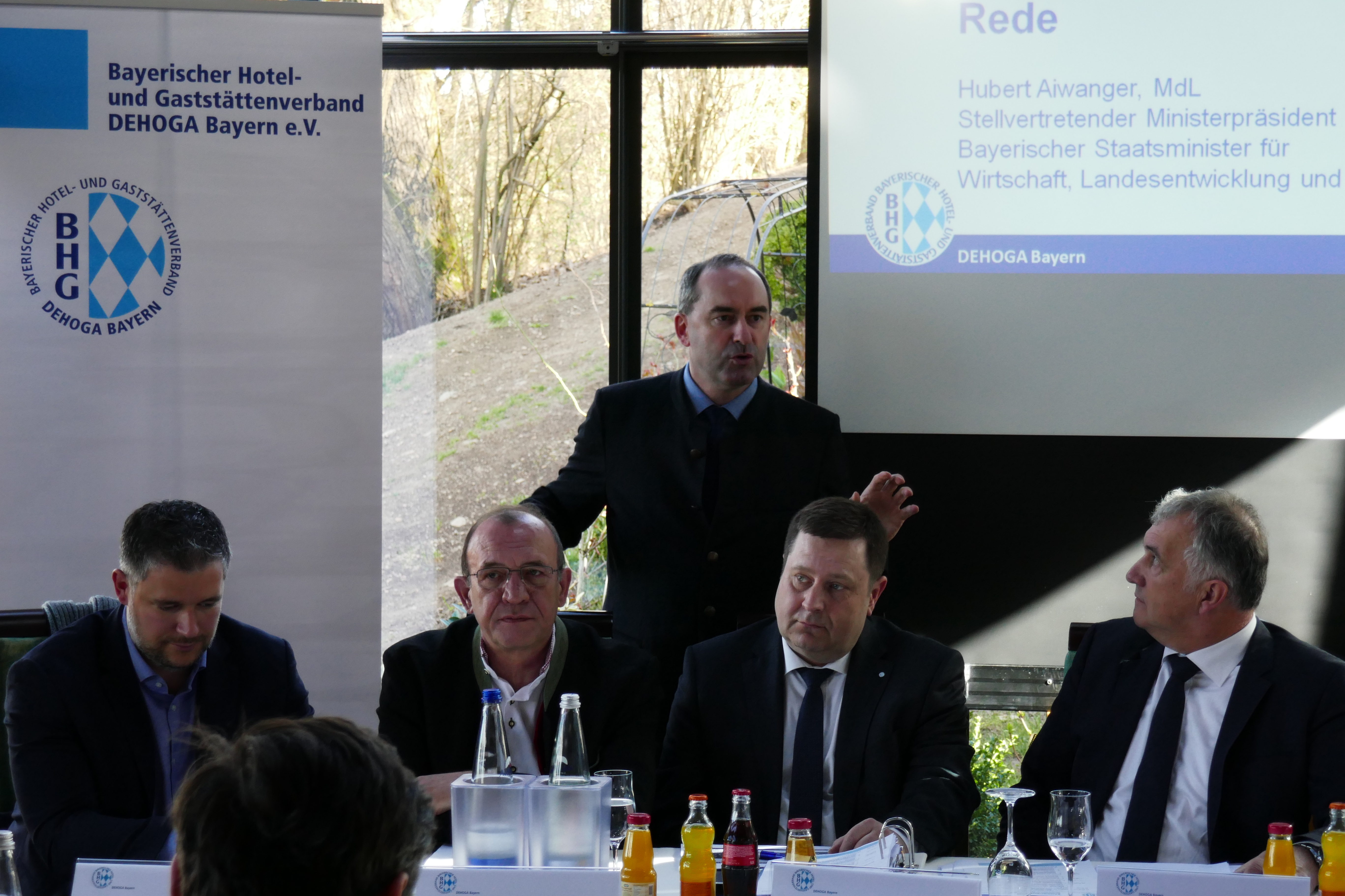 Gegen 11 Uhr musste sich Hubert Aiwanger von den Wirten und Hoteliers wieder verabschieden. Ganze 17 Termine standen an diesem Tag in seinem Kalender. Bevor er ging, versuchte er, den Gastronomen nochmals Mut und Anerkennung auszusprechen: „Ohne euch funktioniert es nicht! Ich bin tiefster Überzeugung, dass ihr eine Schlüsselfunktion innehabt.“ Der Wirt im Dorf müsse neben dem Bürgermeister zur dominierenden Figur werden. Sein Appell: „Tretet selbstbewusst auf, baut eure Infrastruktur aus und wir lassen Fördergelder fließen.“