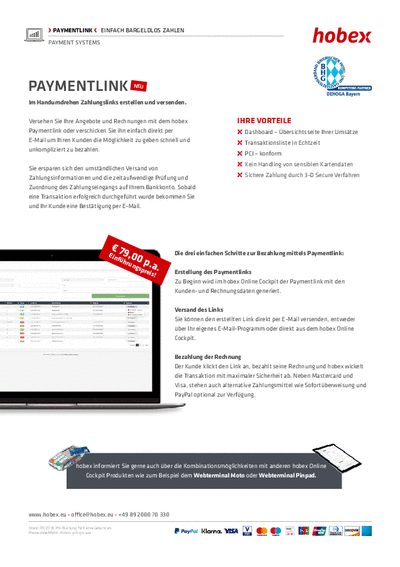 Weitere Informationen erhalten Sie unter: https://www.hobex.at/de/produkte/e_commerce/paymentlink/