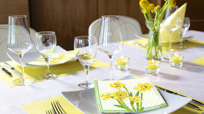 Wenn die Sonne sich wieder öfter zeigt und auch in der Natur alles grüner und bunter wird, ist es vielerorts fast schon Brauch, kräftige Farben und den Sonnenschein nach der dunklen und kalten Jahreszeit auch in Innenräume einkehren zu lassen. Vor allem Restaurants und andere Lokalitäten tun gut daran, ihre Gästeräume mit farbenfrohen Servietten, bunten Tischdecken, färbigen Teelichten und auch anderen Deko-Accessoires zu schmücken und damit einen attraktiven Ort zu schaffen, an dem sich Gäste wohl fühlen und gerne Zeit verbringen.
