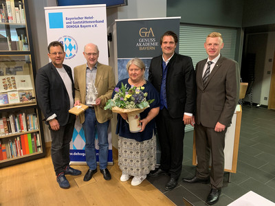 Fachbereichsgeschäftsführer Matthias Artmeier würdigte in seinen Laudationes das unermüdliche und weit überdurchschnittliche Engagement von Monika Poschenrieder und Fritz Kühner. Neben ihren Ehrenämtern auf Kreis- und Bezirksebene im Verband, bringen sich beide mit vollem Herzblut in den Fachbereich Gastronomie ein.