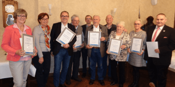 Die Urkunden überreichten Bezirksvorsitzende Andrea Luger, Kreisvorsitzender Bob Neubeck und Bezirksgeschäftsführer Günther Elfert,