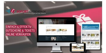 Das SOFORT-Gutscheinsystem ist eine auf Kundenbedürfnisse zugeschnittene Software für den Online- und Offlineverkauf von Gutscheinen und Tickets. Das System wird in den Bereichen Hotel und Gastronomie, Einzelhandel und Handel, Freizeit- und Erlebnisanbieter oder Wellness- und Beautyanbieter erfolgreich eingesetzt.