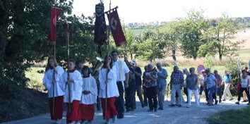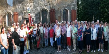 16 Uhr: Treffpunkt ist die Kirche St. Peter und Paul in Schnaid. Der Vorsitzende der Reisevereinigung „Fränkische Schweiz“, Michael Lindenberger hat seinen Charme und seine Beziehungen spielen lassen und hat auch die Austrägler aktiviert. Singend und betend ging es zur Wallfahrtskirche Heilig Kreuz. Nach einer kurzen Verschnaufpause gestaltete Pfarrer Steffl und Pfarrer Stark aus Pretzfeld einen festlichen Gottesdienst. Der Schirmherr Landrat Hermann Ulm und die Bezirksvorsitzende Andrea Luger begrüßten die Pilger. Die Singgruppe des Fränkische Schweiz Vereins Bärnfels bereicherte mit seiner gesanglichen Darbietung die Messe. Lesung, Evangelium und Predigt mit Gleichnissen um die Gastfreundschaft sowie ein gemeinsames Abendmahl für alle waren die Höhepunkte. Nach Gottes Segen ging es hinaus zu einem Gruppenfoto. Fröhlich und durstig mit hurtigen Schritten dann hinüber zu „Franzis Lieberth´s Keller“ – einer von dreien auf dem Kreuzberg – um nach Worten geistiger Labsaal an die stofflichen Dinge wie Bier und Brotzeit zu gelangen. „Michl mach´s noch mal“, hieß es immer wieder bis es dunkelte.