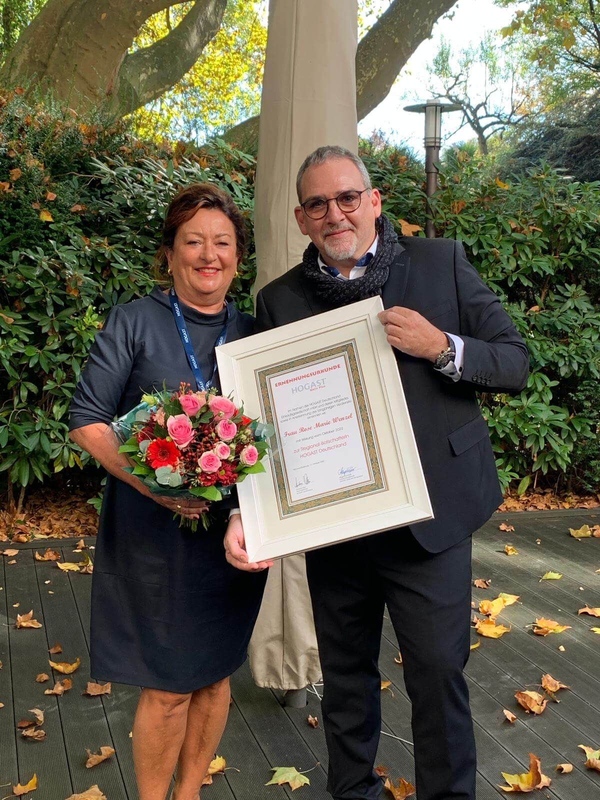 Im feierlichen Rahmen anlässlich des HOGAST-Symposiums in Salzburg wurde Bezirksvorsitzende Rose Marie Wenzel als Anerkennung ihrer langjährigen Dienste mit Wirkung vom Oktober 2022 zur Regional-Botschafterin HOGAST Deutschland ernannt.