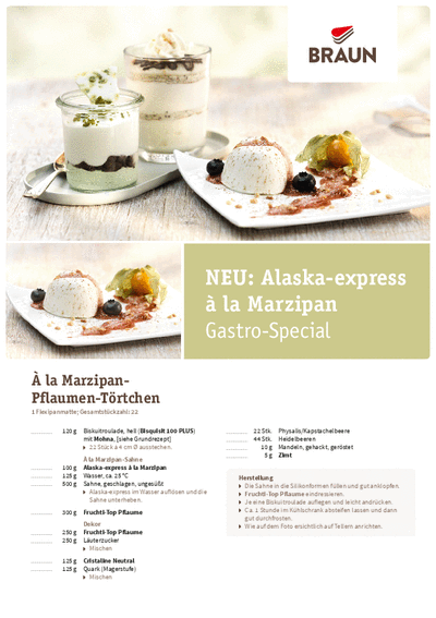 die Dessertcreme „“Alaska-express à la Marzipan“.