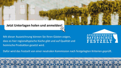 Detaillierte Informationen zum Siegel „Ausgezeichnetes Bayerisches Festzelt“ und den Qualitätskriterien gibt es unter www.bayerischekueche.de/download/