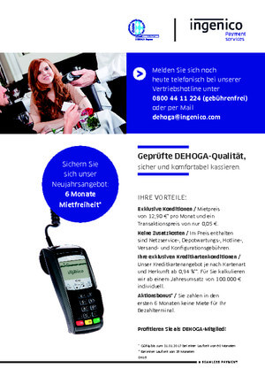 Ingenico Payment Services ist der Anbieter in Europa, der Ihnen alle Verkaufskanäle für bargeldloses Bezahlen aus einer Hand anbieten kann. Lassen Sie sich Umsätze online und offline nicht wegen fehlender Kartenakzeptanz entgehen. Sichern Sie sich den exzellenten Service von Ingenico Payment Services und bieten auch Sie Ihren Kunden das bargeldlose Bezahlen Ihrer Dienstleistung mit allen Möglichkeiten an.