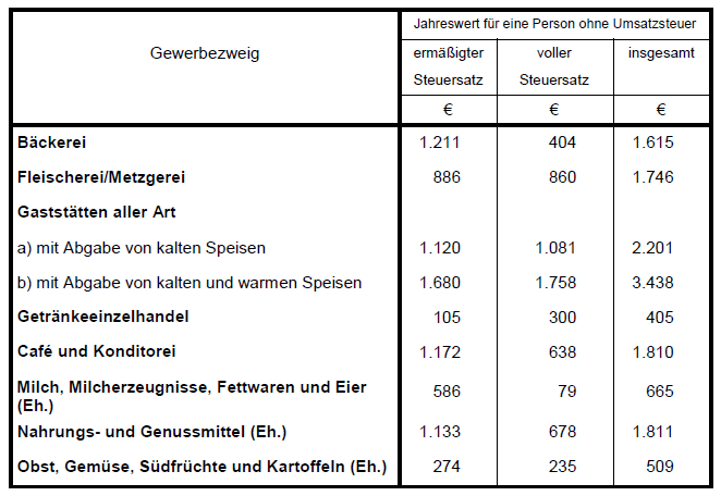 5. Die pauschalen Werte berücksichtigen im jeweiligen Gewerbezweig das allgemein übliche Warensortiment.