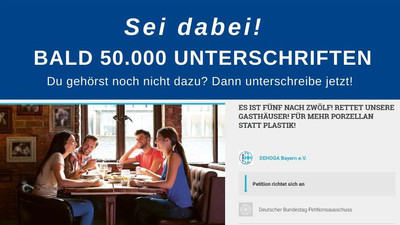 Werben sie auch bei Ihren Mitarbeitern, Gästen und Freunden für Unterstützung für die Forderung „7 % Mehrwertsteuer für Essen - Egal wo und wie!“ Fast 40.000 Unterstützer haben die Petition bereits unterzeichnet. Und wir setzen uns dafür ein, dass es noch viel mehr werden. Denn auch wenn 50.000 Unterstützer das erste Etappenziel sind und wir diesem kontinuierlich näherkommen, sollten wir uns höhere Ziele setzen, damit wir auch tatsächlich Gehör finden.