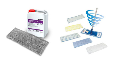 Für hygienisch saubere Küchen ist der innovative Rasant Micro Scrub Mikrofaser-Scheuerbezug die ideale Lösung zur Reinigung von hartnäckigen Verschmutzungen, speziell auch von rutschhemmenden Küchenböden. In Kombination mit dem neuen KitchenPro Oxy Des Concentrate bietet Ecolab so eine noch effizientere Lösung, denn die innovative Wasserstoffperoxid-Formulierung vereint eine ausgezeichnete Reinigungsleistung mit sehr guter Fettlösekraft und sehr gutem Kalklösevermögen sowie mit einer besonders schnell wirksamen desinfizierenden Wirkung (bakterizid, levurozid, fungizid und viruzid). Die KitchenPro Oxy Produkte sind kombinierte Reinigungs- und Desinfektionsmittel, die höchsten Anforderungen auch bei verunreinigten Oberflächen genügen. Zudem sind sie frei von Ethanol, QAV, Glutaraldehyd und Biguanide und von Duftstoffen.