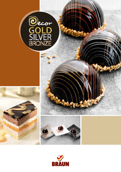 Für Glanz und Glimmer bietet BRAUN Glanzglasuren z.B. in neutral und weiß, die mit wasserlöslicher Lebensmittelfarbe nach Belieben eingefärbt werden können. Zusätzlichen Glimmer verleihen die Decor-Produkte Gold, Bronze und Silber.