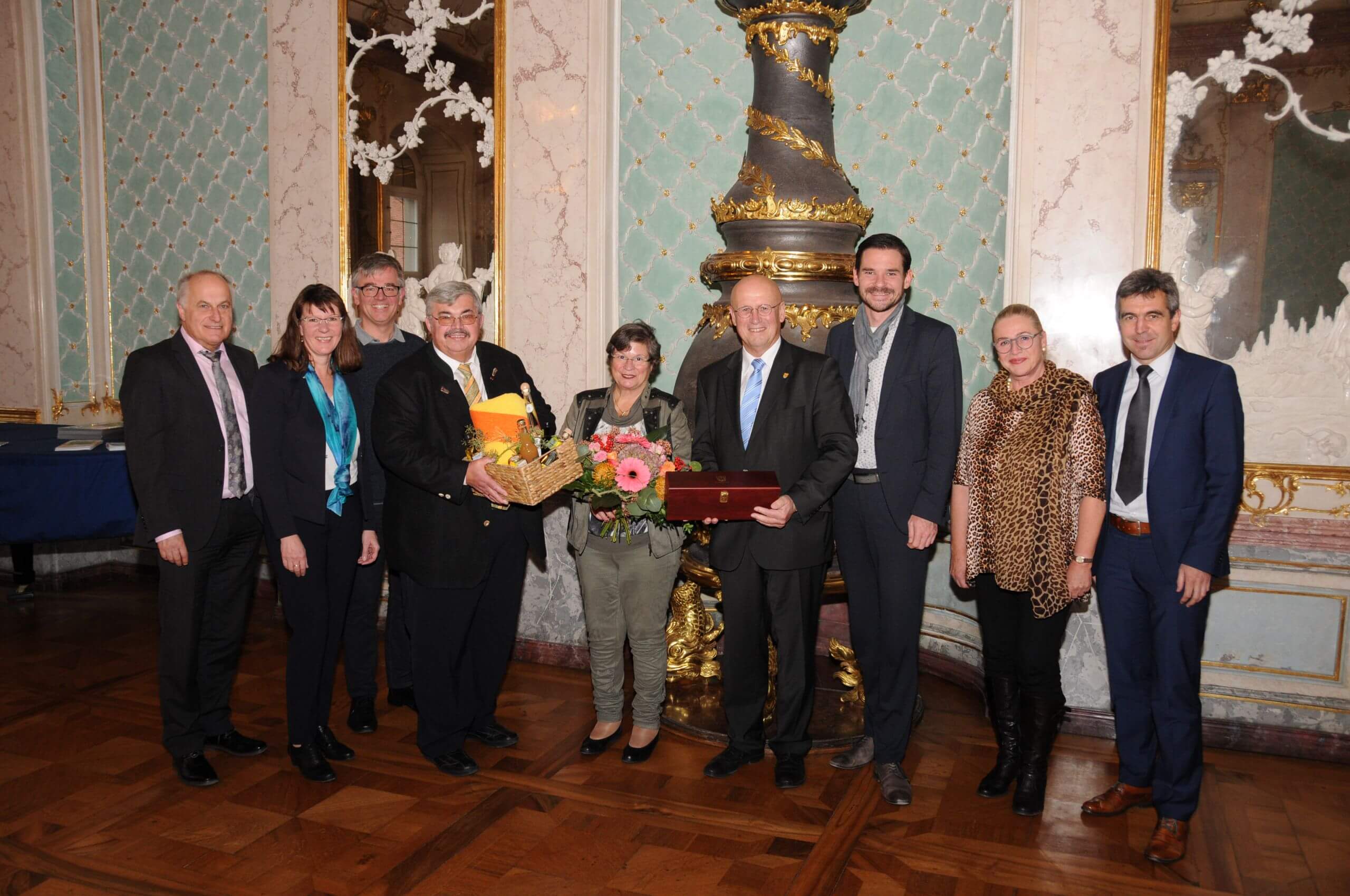 Die Verabschiedung von Siegfried Gallus stand im Mittelpunkt der diesjährigen Kreisversammlung Eichstätt am 12.11.2019 im Spiegelsaal des fürstbischöflichen Palais in Eichstätt. Landrat Anton Knapp würdigte ebenso wie Bezirksvorsitzende Jutta Griess die Verdienste des langjährigen Kreisvorsitzenden für die gastgewerbliche Branche wie auch für den Tourismus und insbesondere den Naturpark Altmühltal. Auch Bezirksgeschäftsführerin Susanne Gruber gab einen Überblick über die großen Verdienste von Siegfried Gallus, auf dessen Engagement bei Politik und Verbänden die Einführung des reduzierten Mehrwertsteuersatzes in der Hotellerie seit 01.01.2010 zurückgeht. Zum Dank für den stets großen Einsatz von Ehrenpräsident Gallus überreichten die Laudatoren sowie auch die Kreisvorstandskollegen zahlreiche Geschenke und Blumen für die immer im Hintergrund agierende Ehefrau Astrid Gallus.