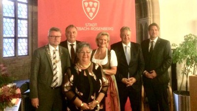 Im Rahmen der feierlichen Eröffnung "30 Jahre Schlemmerwochen" in Sulzbach-Rosenberg, zu der auch DEHOGA Bayern Präsidentin Angela Inselkammer und Landesgeschäftsführer Dr. Thomas Geppert angereist waren, bedachte Bezirksvorsitzender Hans-Jürgen Nägerl Frau Inge Girbert als langjähriges, engagiertes Mitglied mit einer besonderen Auszeichnung.