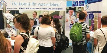 Zielgruppe dieser Messe in der Freiheitshalle Hof am 04. und 05. Juni 2019 waren Schüler aus ganz Oberfranken und den angrenzenden Regionen Thüringen, Vogtland und Böhmen. Der DEHOGA-Bayern Bezirk Oberfranken beteiligten sich an der Messe mit einem eigenen Stand. Veranstalter war das Institut für Talententwicklung GmbH. Das IfT verteilte Messehandbücher in den Schulen und vereinbarte vorab Termine für die 15 bis 20-minütigen individuellen und verbindlichen Beratungsgespräche mit den Jugendlichen. Die interessierten Schüler wurden auf diese Gespräche sehr gut vorbereitet. Viele Jugendlichen brachten auch gleich ihre Bewerbungsunterlagen mit. Das Ergebnis waren ergiebige Beratungsgespräche und dadurch ein hoher Nutzen für beide Seiten. An diesen beiden Tagen waren jeweils 3 oberfränkische DEHOGA-Bayern Ausbildungsbotschafter für die passgenauen und getakteten Gesprächstermine am Messestand.