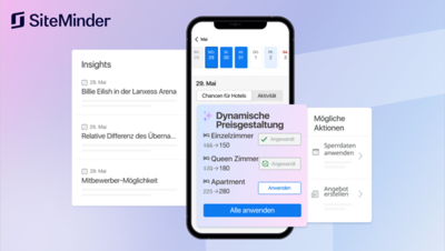 Mit der neuen Produktlösung Dynamic Revenue Plus von Siteminder bleiben Sie der Konkurrenz immer einen Schritt voraus. Verabschieden Sie sich von Unsicherheiten mit leistungsstarken, datengesteuerten Preisempfehlungen, die jede Umsatzchance erfassen. Durch Sofortbenachrichtigungen, umfassende Marktanalysen und Echtzeit-Daten können Sie Ihre Preise optimal anpassen und Ihren Wettbewerbsvorteil sichern – alles in einer einzigen, vernetzten Plattform.