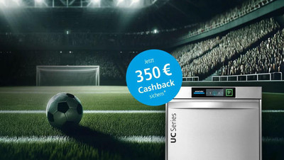 Die gekaufte Spülmaschine wird vom Kunden online registriert. Anschließend muss die Maschine unter my.winterhalter.com mit "Connected Wash" vernetzt werden. Die ersten 50 Bestellungen erhalten zusätzlich ein original DFB-Heimtrikot 2024.