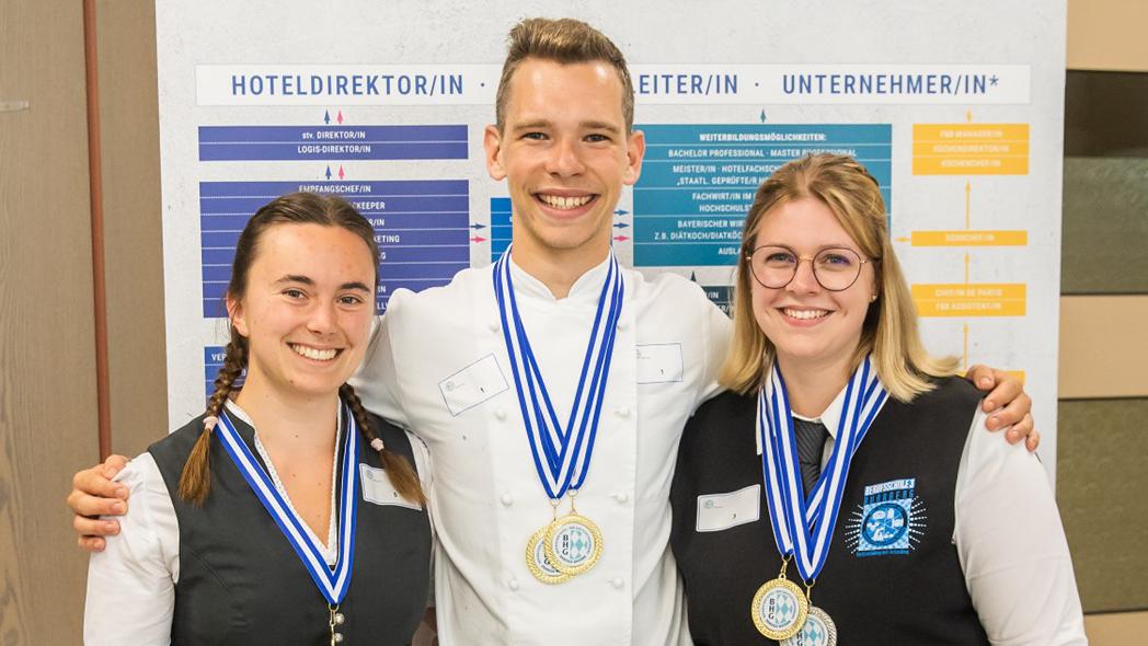 (Nürnberg/ München) Restaurant-fachfrau Lisa-Marie Barbara Harrer (Heidexx Genusshütte, Heideck), Hotelfachfrau Katharina Walk (Hotel Bergkristall, Oberstaufen) und Koch Tobias Pecher (Feinkost Käfer, München) heißen die Siegerinnen und Sieger der Bayerischen Jugendmeisterschaften 2023 in den gastgewerblichen Ausbildungsberufen. Den ersten Platz in der Mannschaftswertung holte sich die Städtische Berufsschule für Hotel-, Gaststätten- und Braugewerbe München. Platz zwei und drei gingen an die Berufsschule 3 in Nürnberg bzw. die Hotelberufsschule Viechtach.