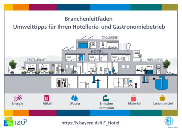 Welche Umweltschutz- und Sparpotenziale liegen in Ihrem Hotellerie- oder Gastronomiebetrieb? In Zusammenarbeit mit dem Bayerischen Hotel- und Gaststättenverband (DEHOGA Bayern) hat der Umwelt- und Klimapakt Bayern einen Leitfaden für die Hotellerie- und Gastronomiebranche entwickelt, der hilfreiche Tipps und Praxisbeispiele für den betrieblichen Umweltschutz enthält.